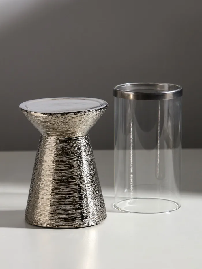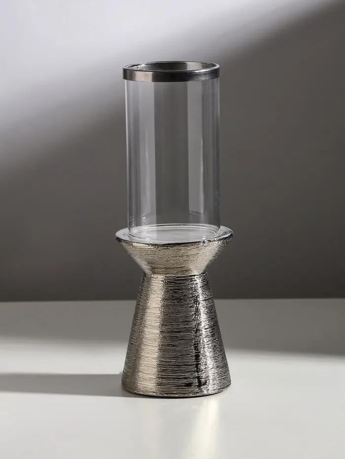 Подсвечник на 1 свечу «Пустыня», керамика, стекло, d=8 см, серебро, 9.5×9.5×27 см — Характеристики