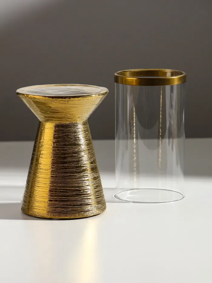Подсвечник на 1 свечу «Пустыня», керамика, стекло, d=8 см, золото, 9.5×9.5×27 см — Характеристики
