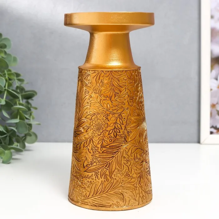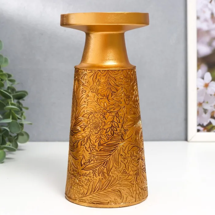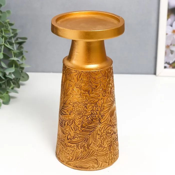 Подсвечник на 1 свечу «Растительные узоры», полистоун, золото, 19.5×9.5×9.5 см — Характеристики