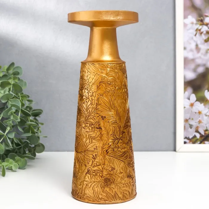Подсвечник на 1 свечу «Растительные узоры», полистоун, золото, 25×9.5×9.5 см — Характеристики