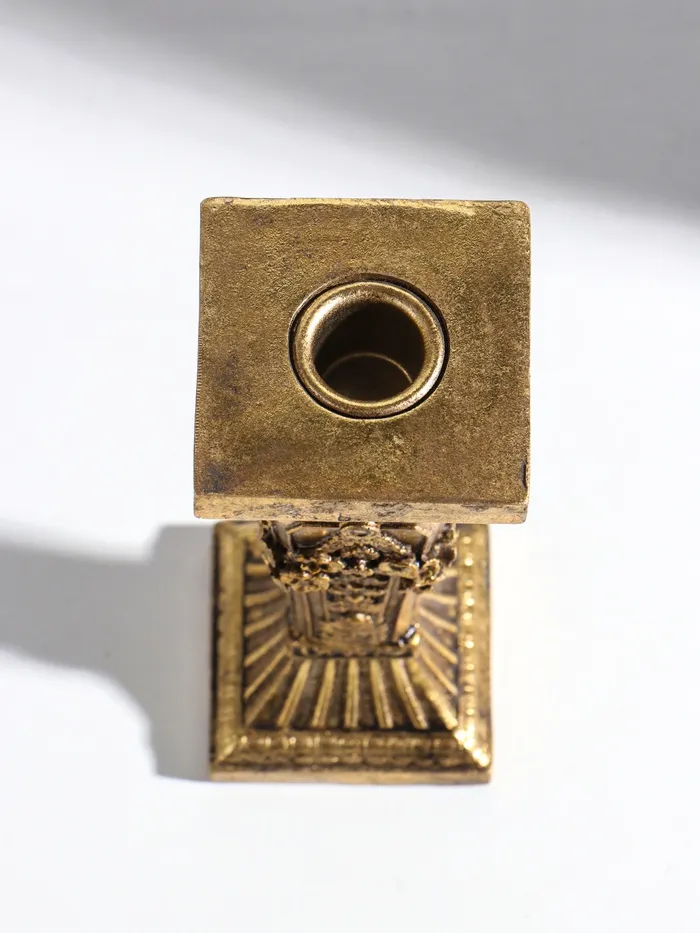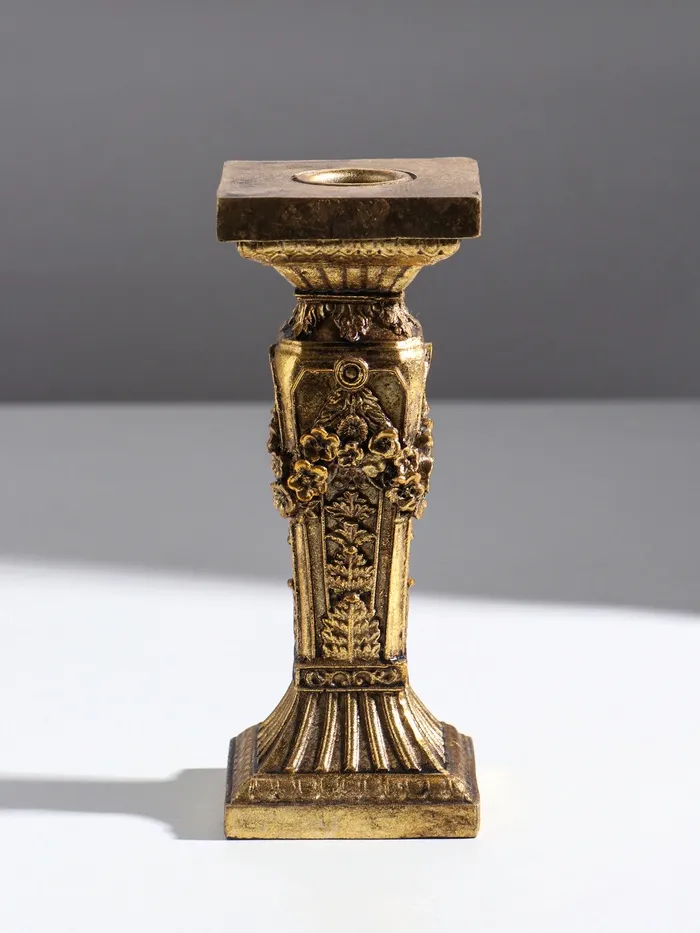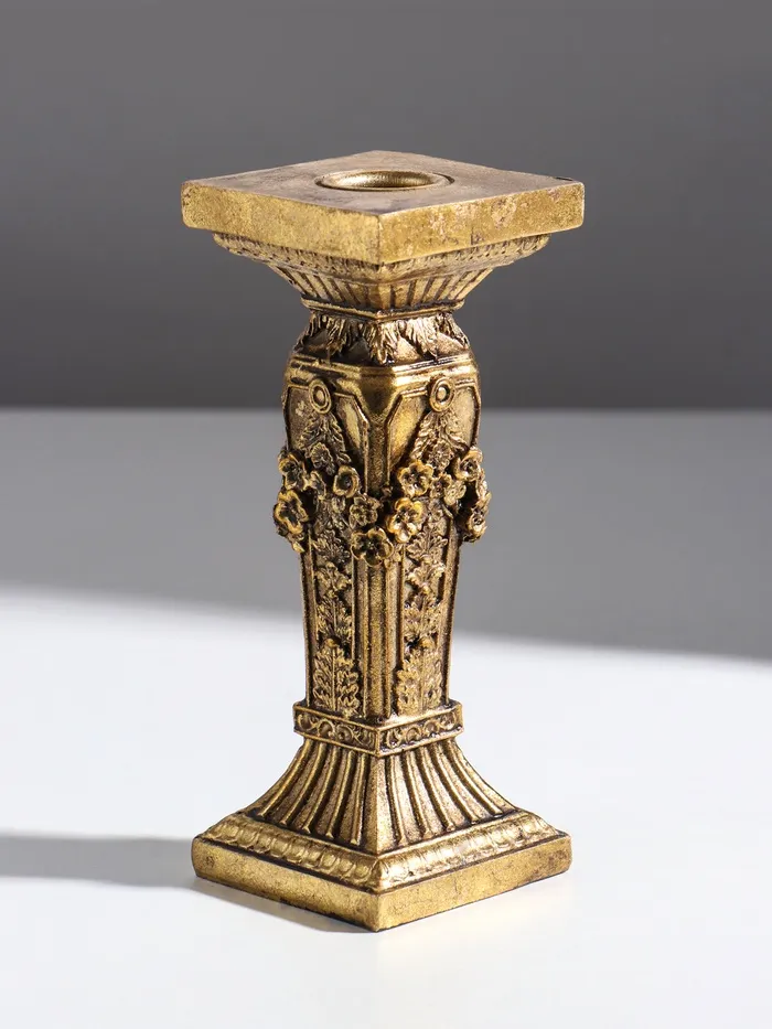 Подсвечник на 1 свечу «Римская колонна с цветами», полистоун, состаренное золото, 7×7×17 см — Характеристики
