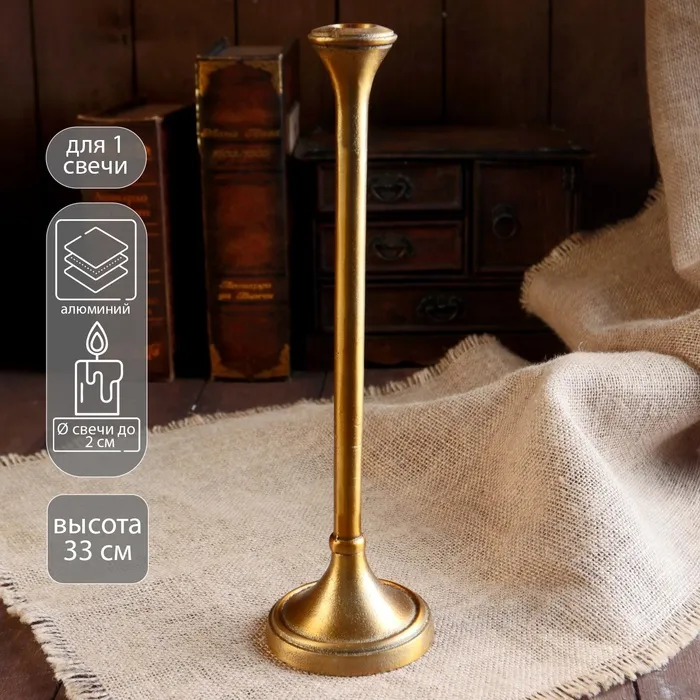 Подсвечник на 1 свечу «Роман», 9.5×9.5×33 см, алюминий — Характеристики