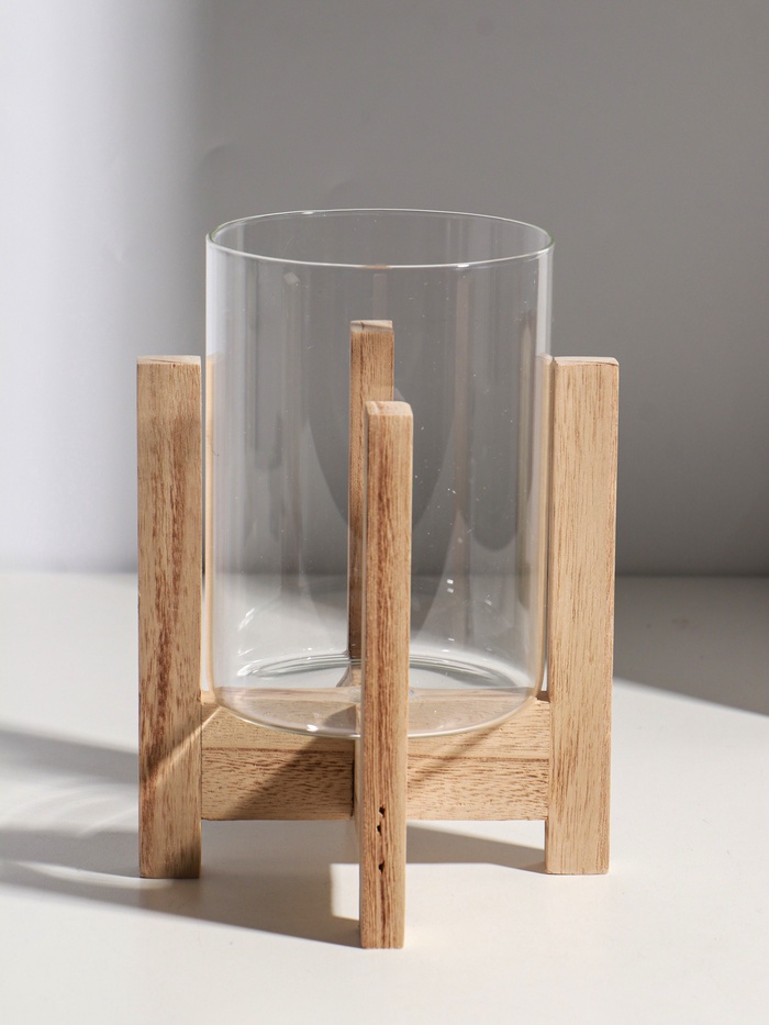 Этот деревянный подсвечник с прозрачным стеклянным плафоном создаёт особую атмосферу уюта и спокойствия. Он станет универсальным элементом декора для вашего дома, наполняя пространство мягким, живым светом.