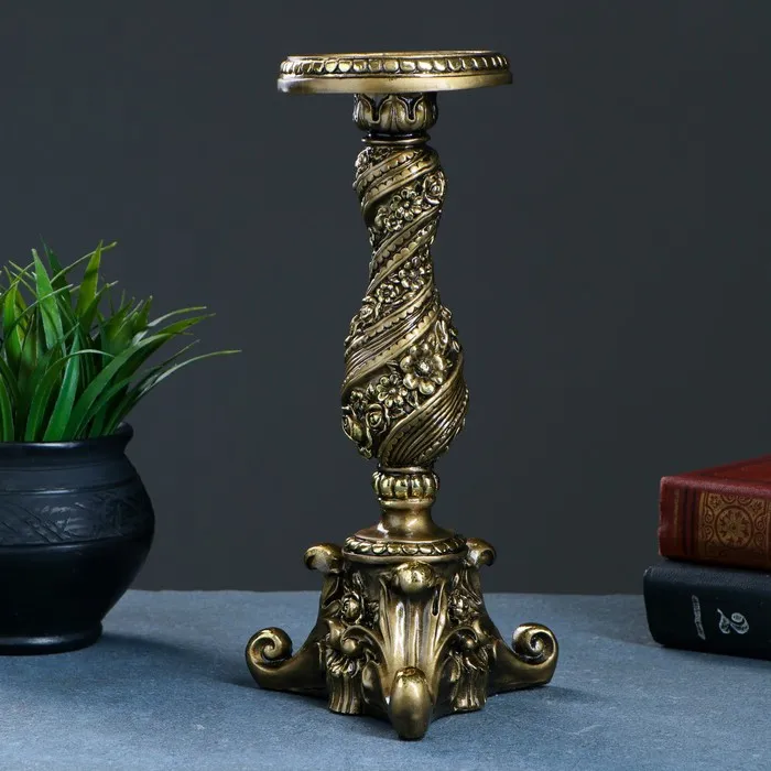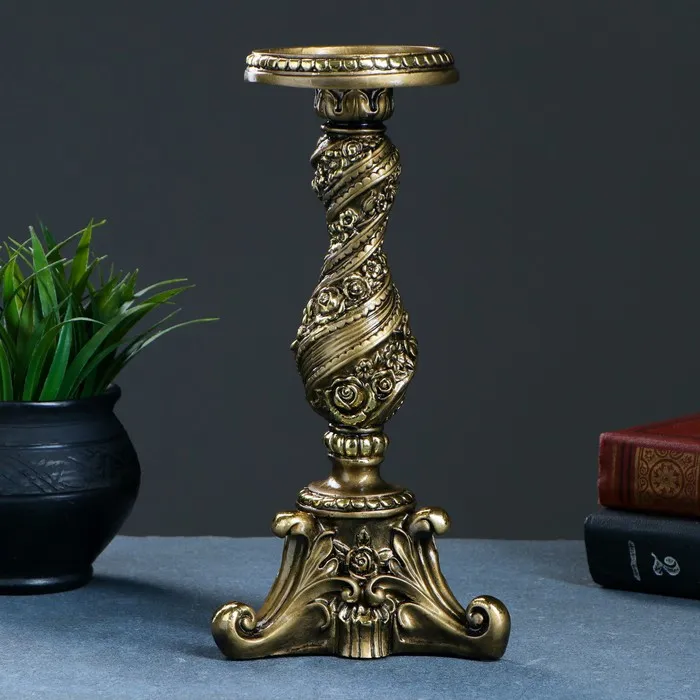 Подсвечник на 1 свечу с цветами, золото 13×13×28 см, для свечи d=2 см — Характеристики