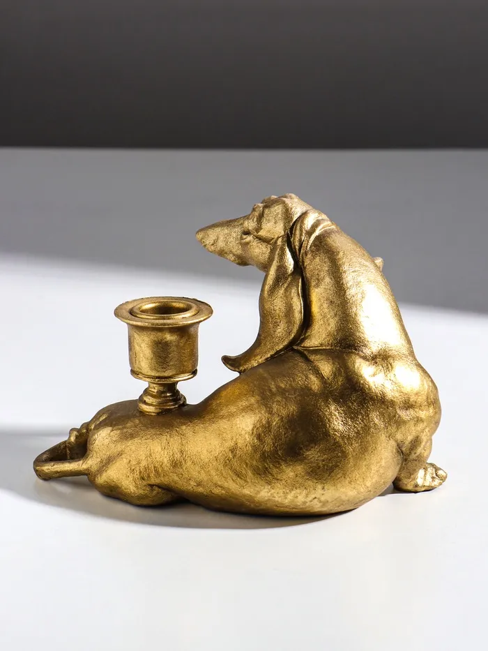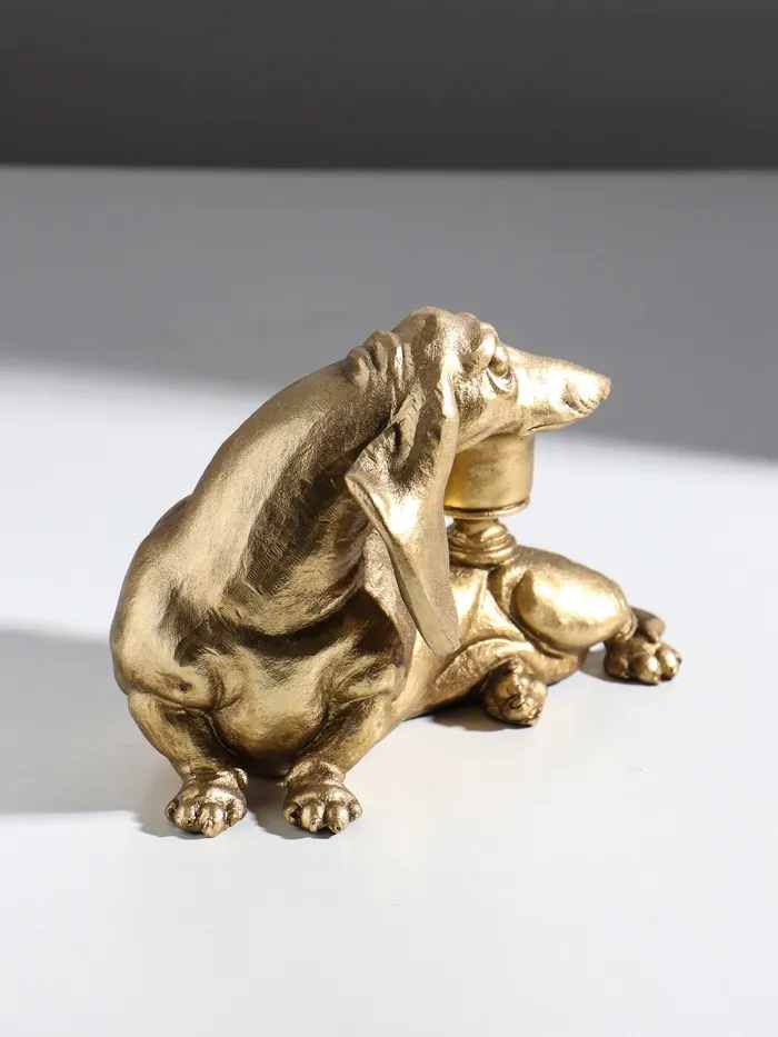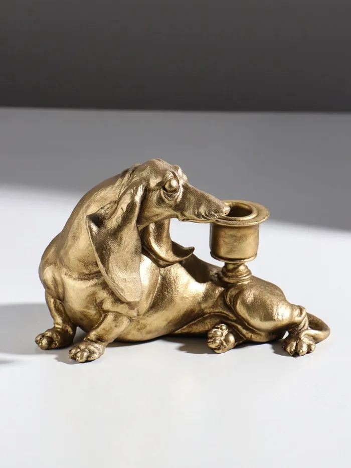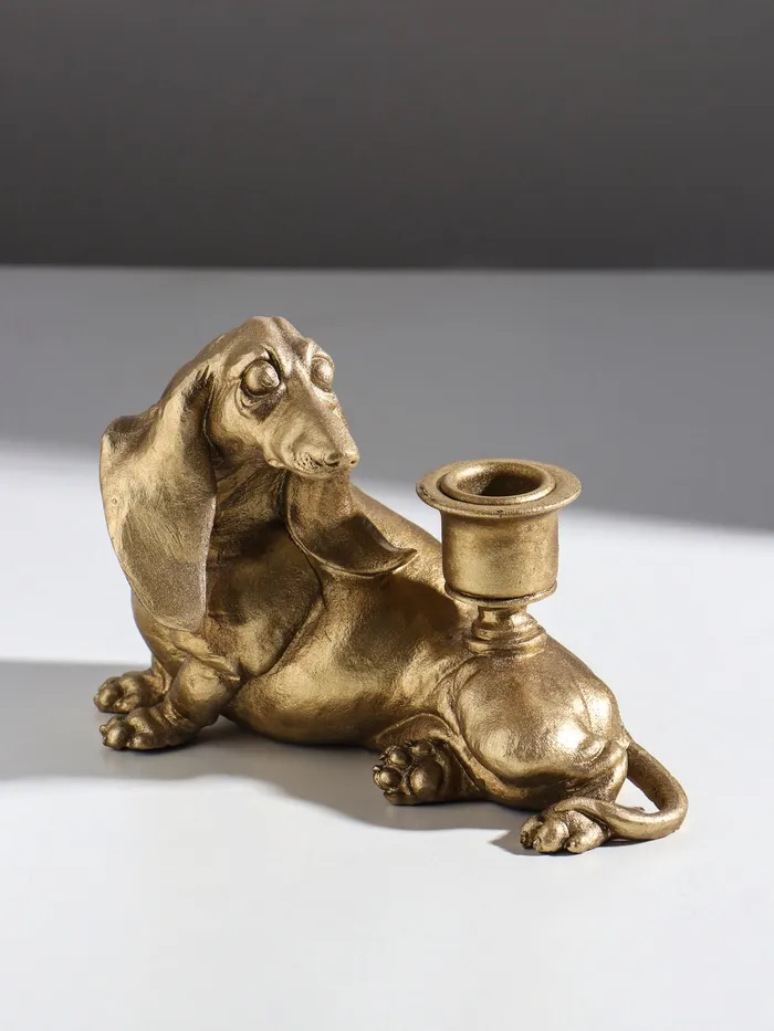 - Элегантный дизайн: форма таксы и золотистый цвет придают подсвечнику уникальный и стильный вид.