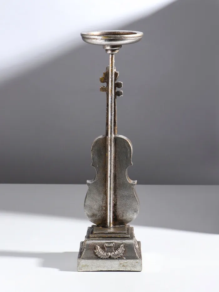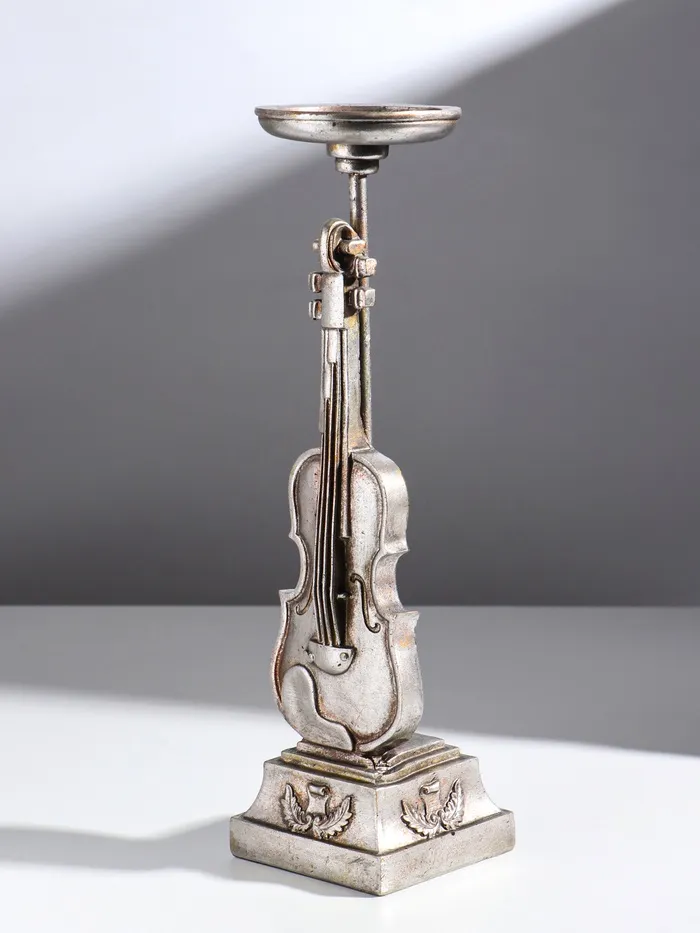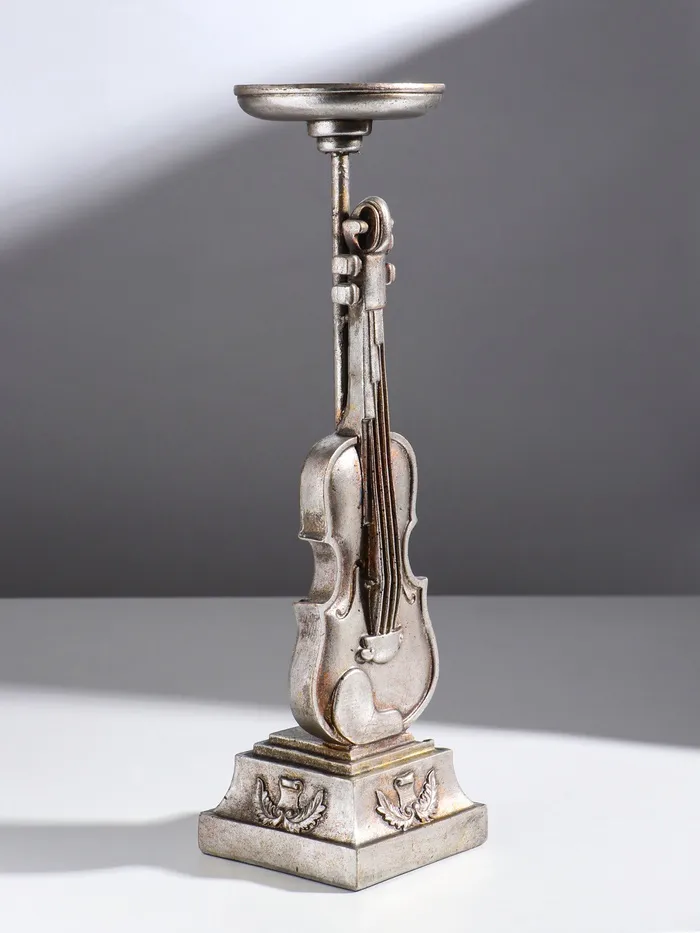 Подсвечник на 1 свечу «Скрипка», полистоун, серебро, 10×10×36 см — Характеристики