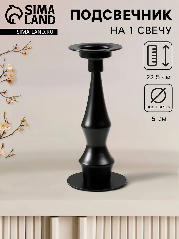 Металлический подсвечник на 1 свечу «Антонио», d=до 5 см, чёрный 9×9×22.5 см