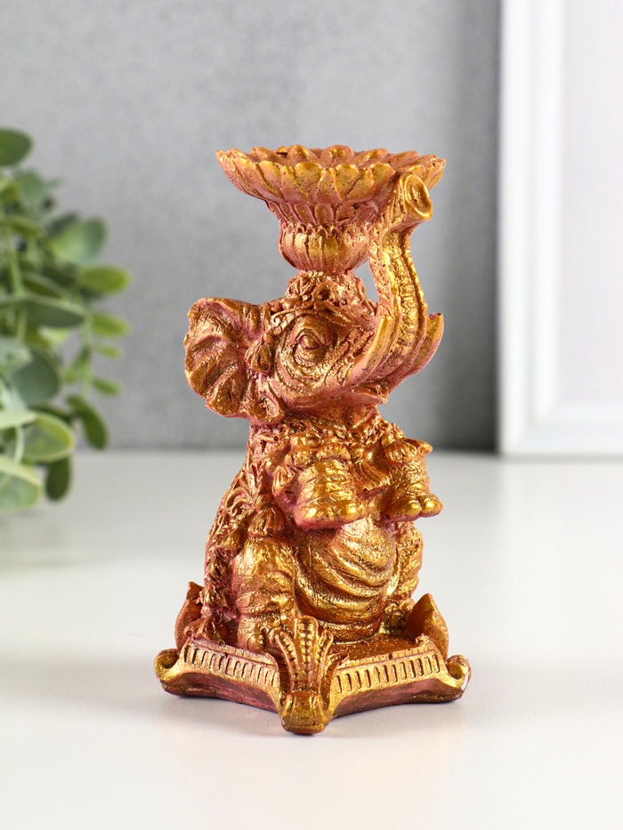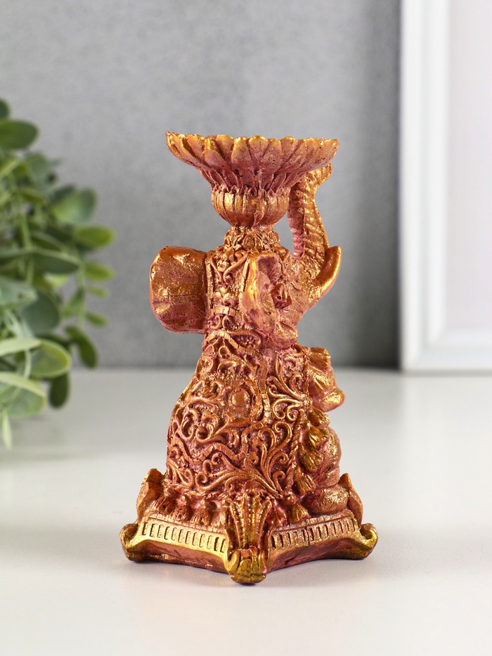 Подсвечник на 1 свечу «Слон» высота, гипс, 12 см, бордо с позолотой — Характеристики