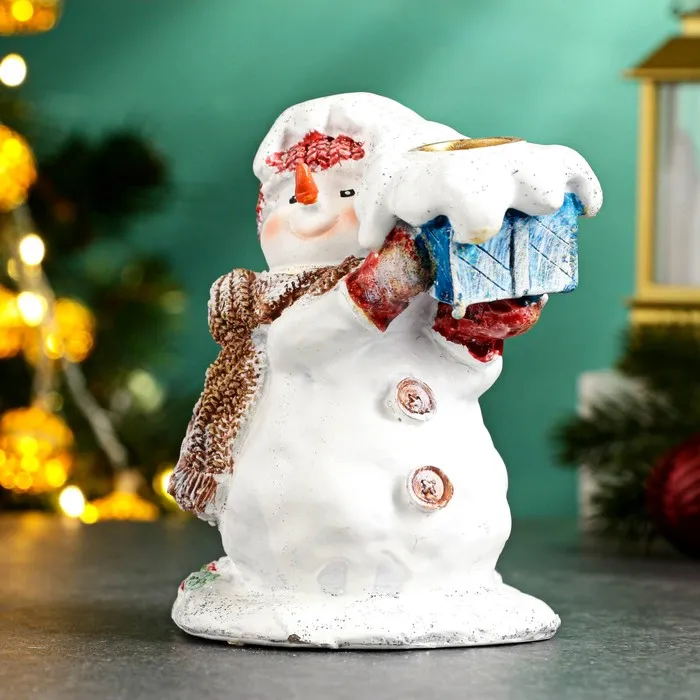 Подсвечник на 1 свечу «Снеговичок с подарком», 12 см — Характеристики