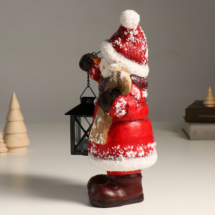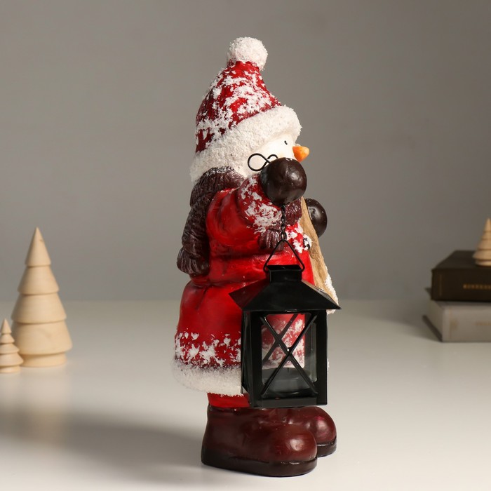 Подсвечник на 1 свечу «Снеговик в красной шубке, с фонарём и лыжами», керамика, 21.5×12×31 см — Характеристики