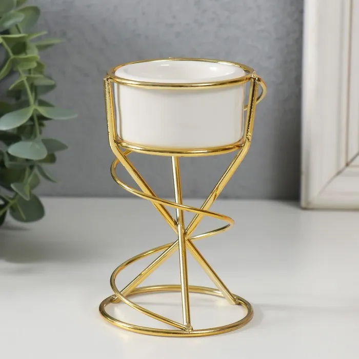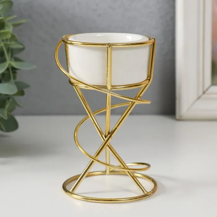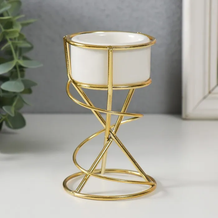 Подсвечник на 1 свечу «Спираль», керамика, металл, белый с золотом, 6.8×6.7×11.3 см — Характеристики
