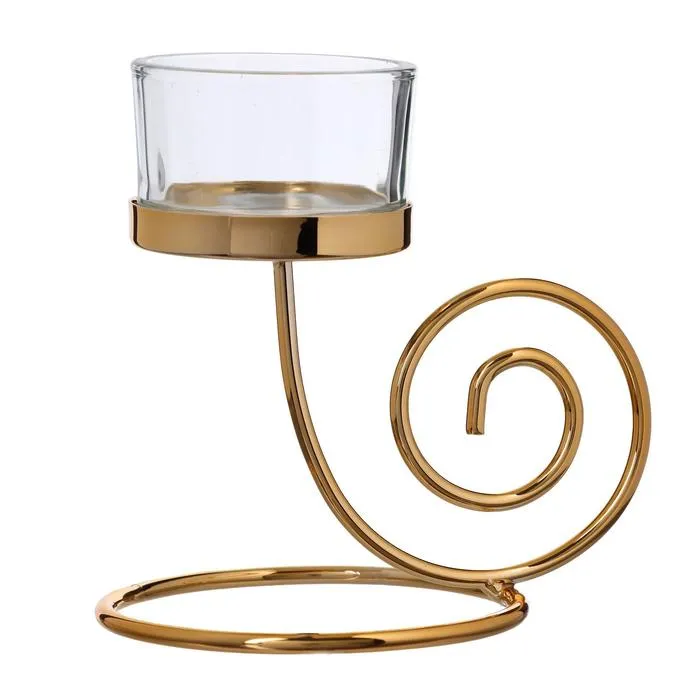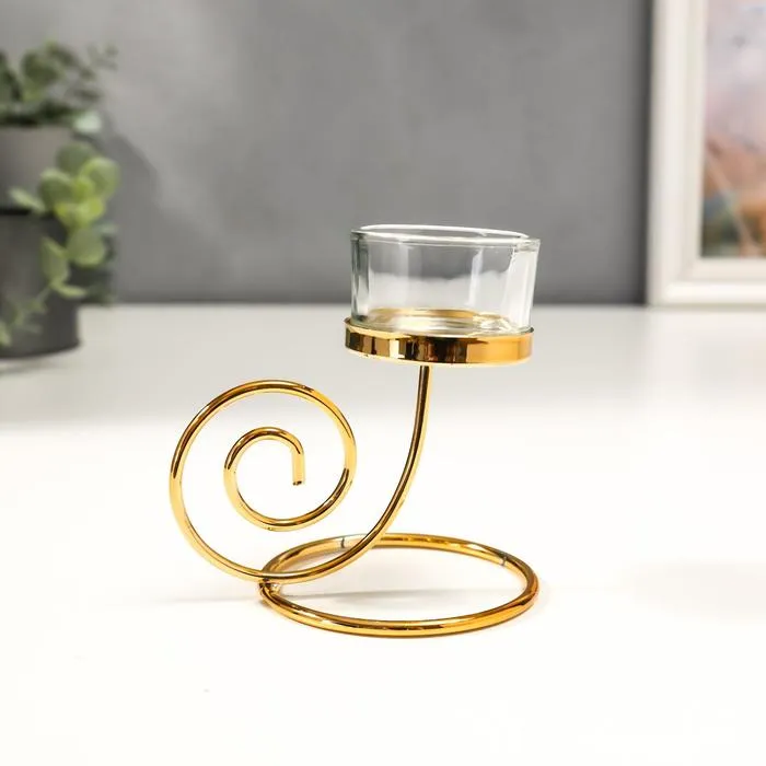 Подсвечник на 1 свечу «Спиралька», металл, стекло, золото, 12.5×9.8×8 см — Характеристики