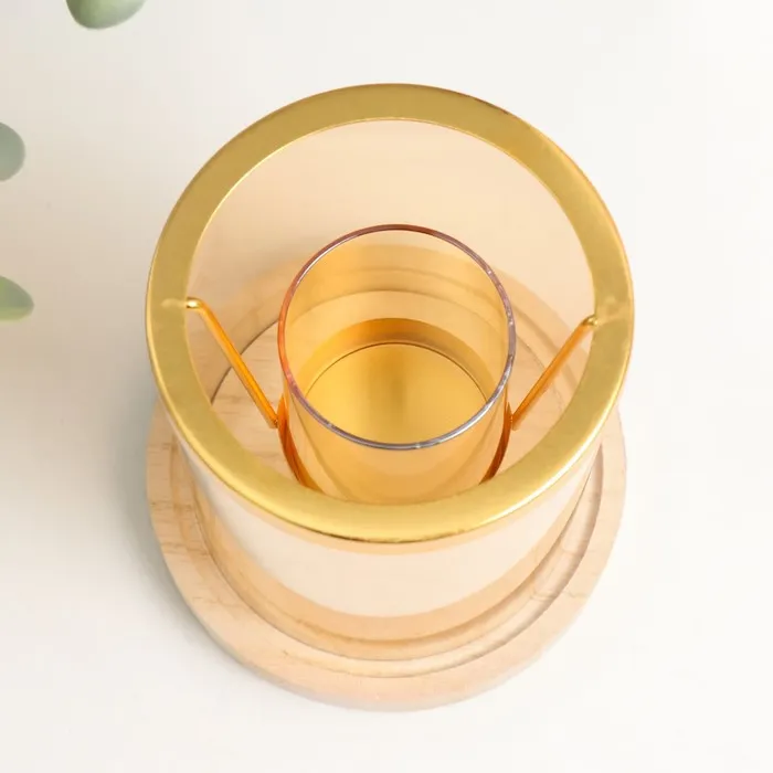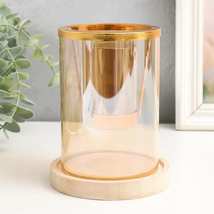Подсвечник на 1 свечу «Стаканчик в цилиндре», стекло, металл, дерево, d=5 см, 12×12×14.5 см — Характеристики