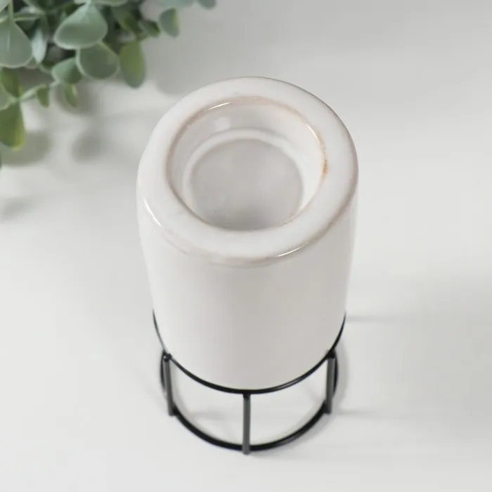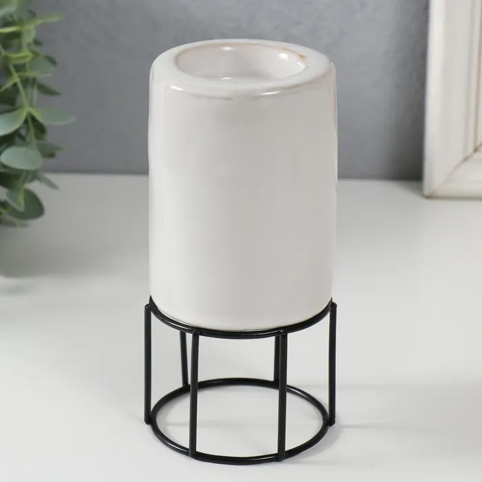 Подсвечник на 1 свечу «Столбик», керамика, металл, белый с чёрным, 7.4×7.4×15.3 см — Характеристики