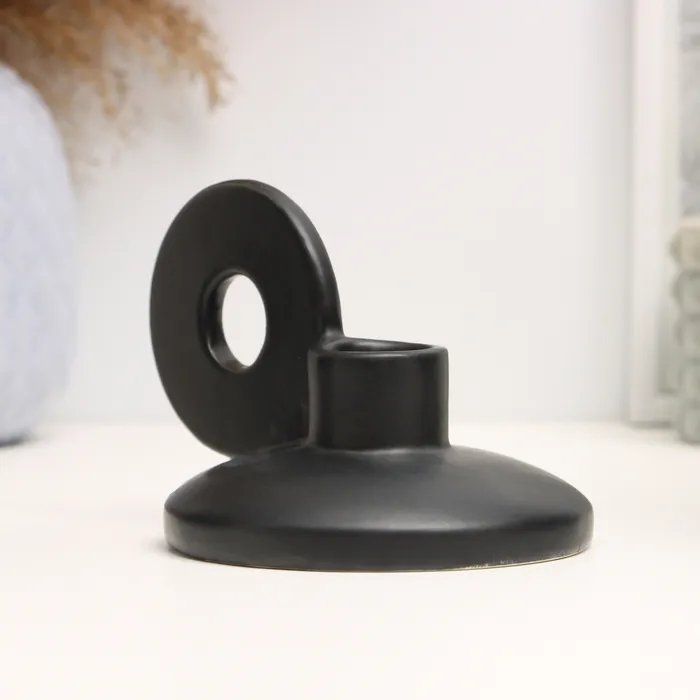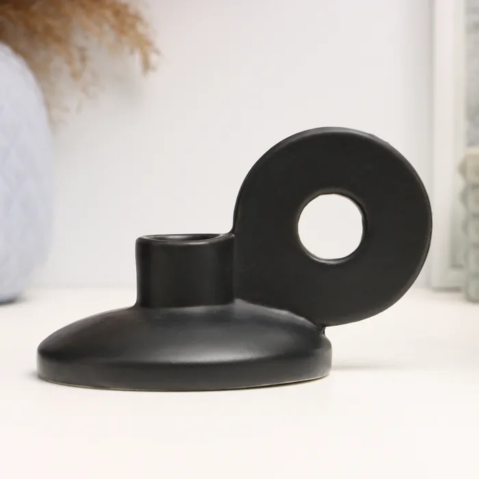 Подсвечник на 1 свечу TAKE IT EASY «Лео», керамика, чёрный глянец, 8×13×10 см
