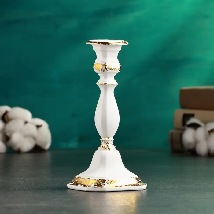 Подсвечник на 1 свечу «Тапперт», 21×10×10 см, белый с позолотой — Характеристики