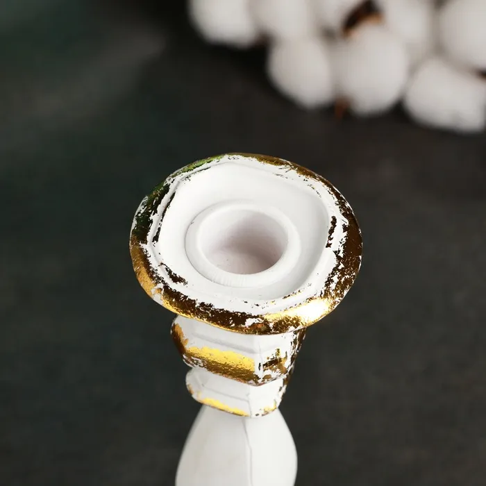 Подсвечник на 1 свечу «Тапперт», 21×10×10 см, белый с позолотой