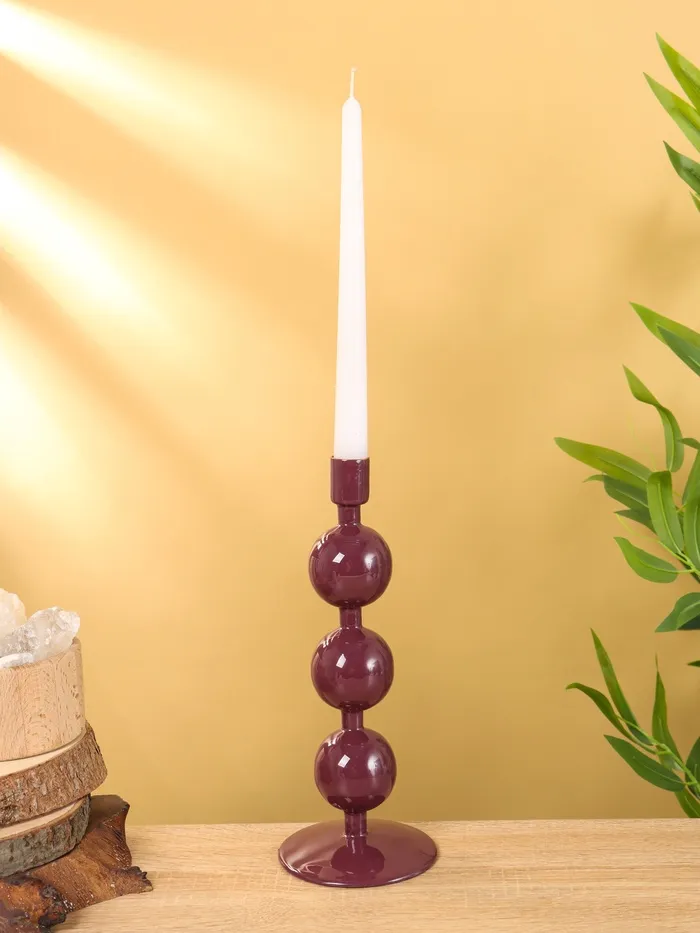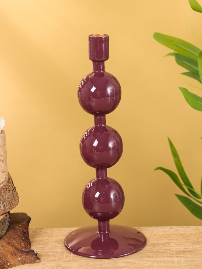 Подсвечник на 1 свечу текстурный «Баклажановый», с 3 сферами, 10×10×25 см — Характеристики