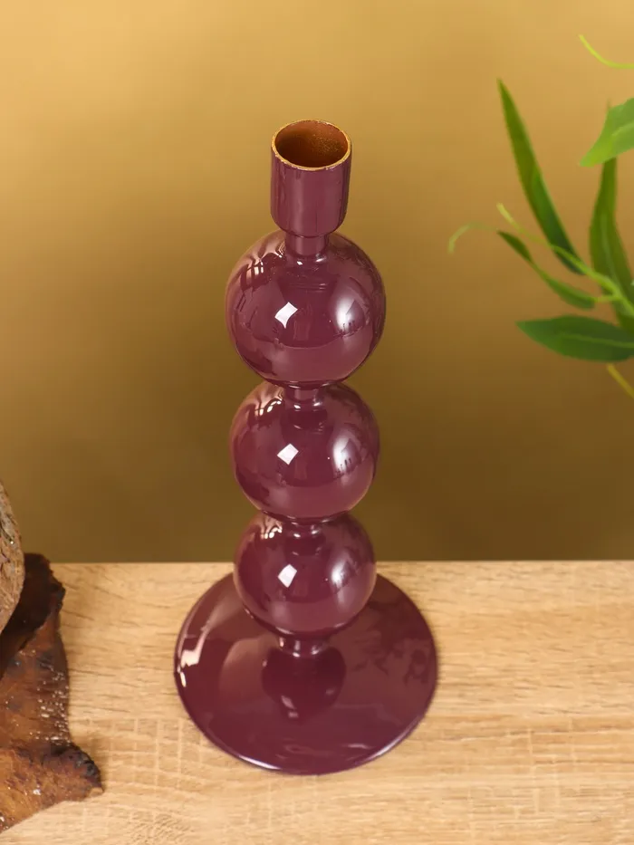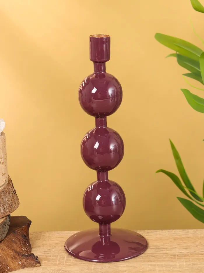 Подсвечник на 1 свечу текстурный «Баклажановый», с 3 сферами, 10×10×25 см