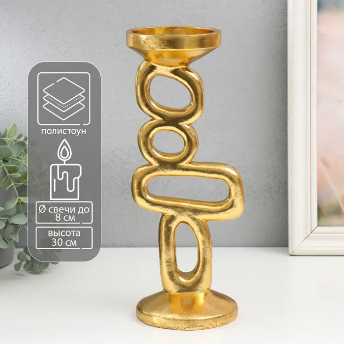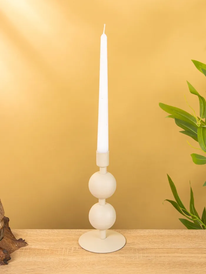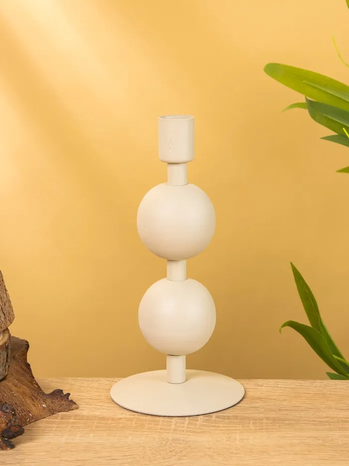 Подсвечник на 1 свечу текстурный «Бежевый», с 2 сферами, 8.5×8.5×18 см — Характеристики