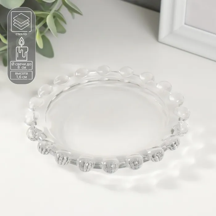 Стеклянный подсвечник на 1 свечу «Капли на стекле», d=8 см, прозрачный, 11.5×11.5×1.6 см