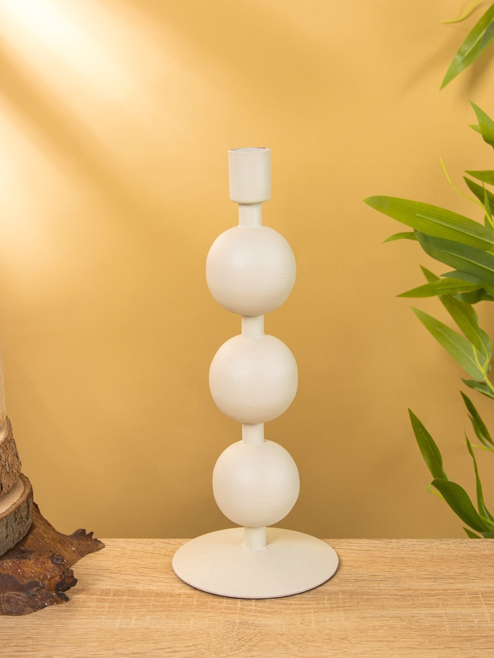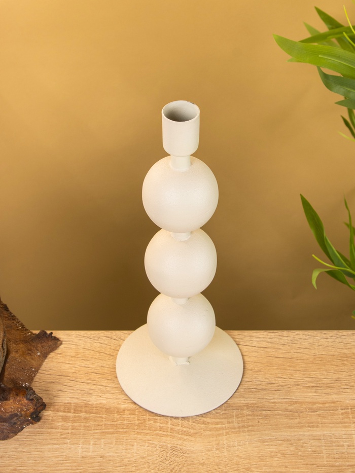 Подсвечник на 1 свечу текстурный «Бежевый», с 3 сферами, 10×10×25 см — Характеристики