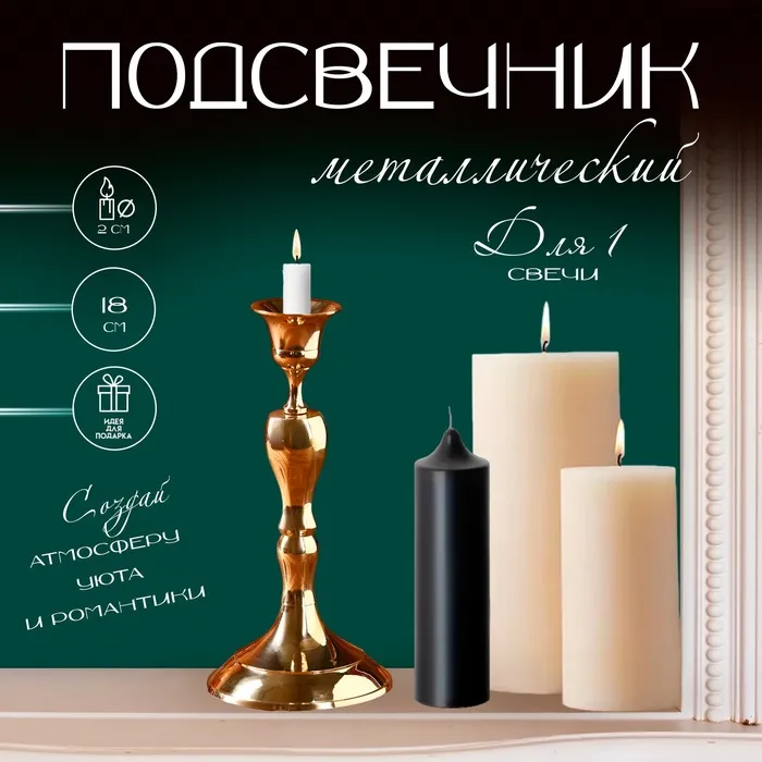 Подсвечник на 1 свечу текстурный «Болотный», 8×8×20 см — Характеристики