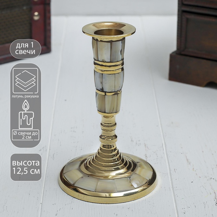 Подсвечник с перламутром "Счастье" на 1 свечу, латунь 8,5х8,5х12,5 см