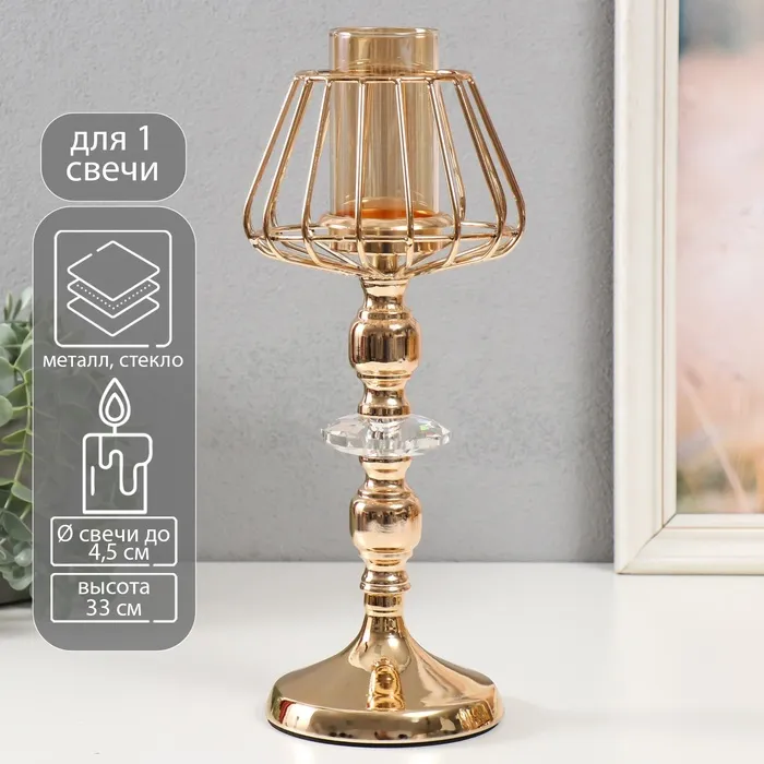 Подсвечник металл на 1 свечу «Флавия», золото, d=4.5 см, 13×13×33 см