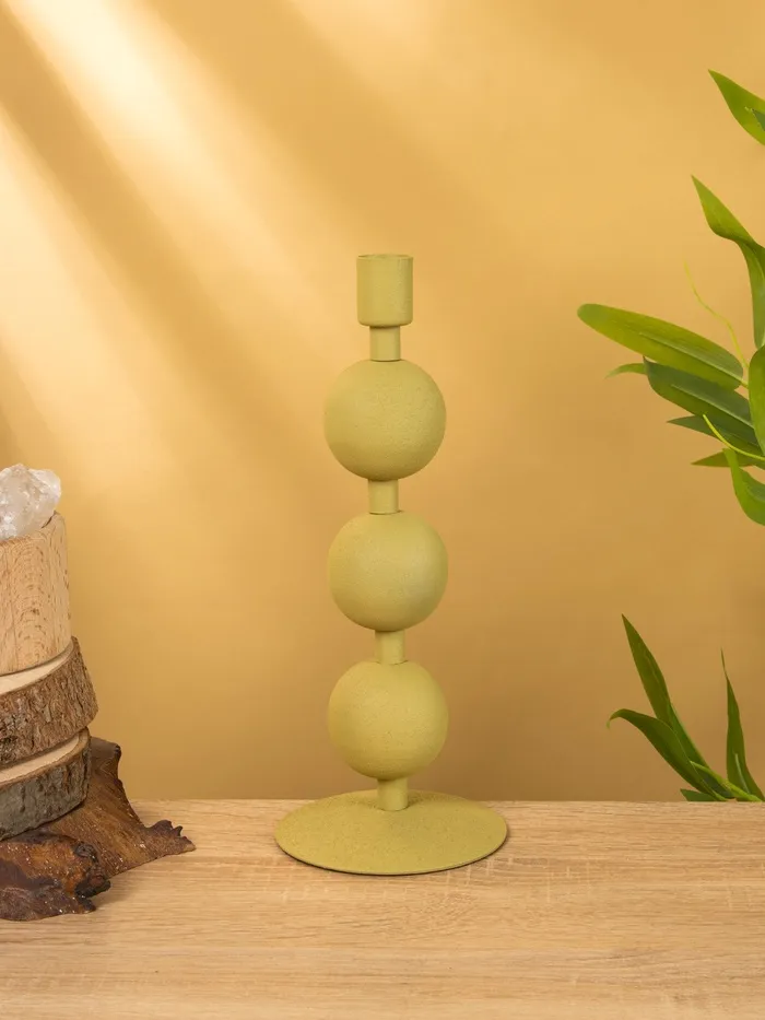 Подсвечник на 1 свечу текстурный «Оливковый», с 3 сферами, 10×10×25 см