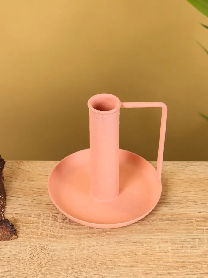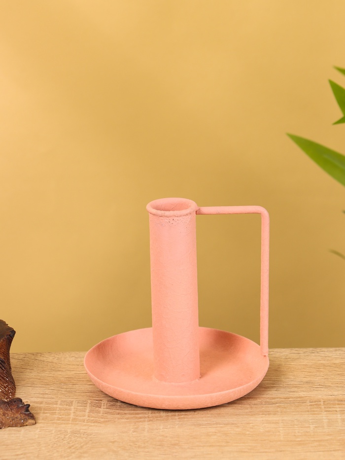 Подсвечник на 1 свечу текстурный с ручкой и блюдцем «Пудровый розовый», 10×10×9.5 +/- 0.5 см — Характеристики