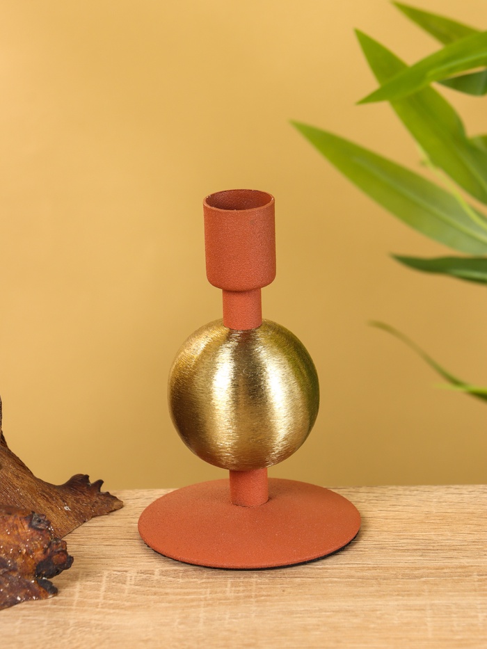 Подсвечник на 1 свечу текстурный «Терракотовый», с 1 сферой, 7.5×7.5×11.5 см — Характеристики