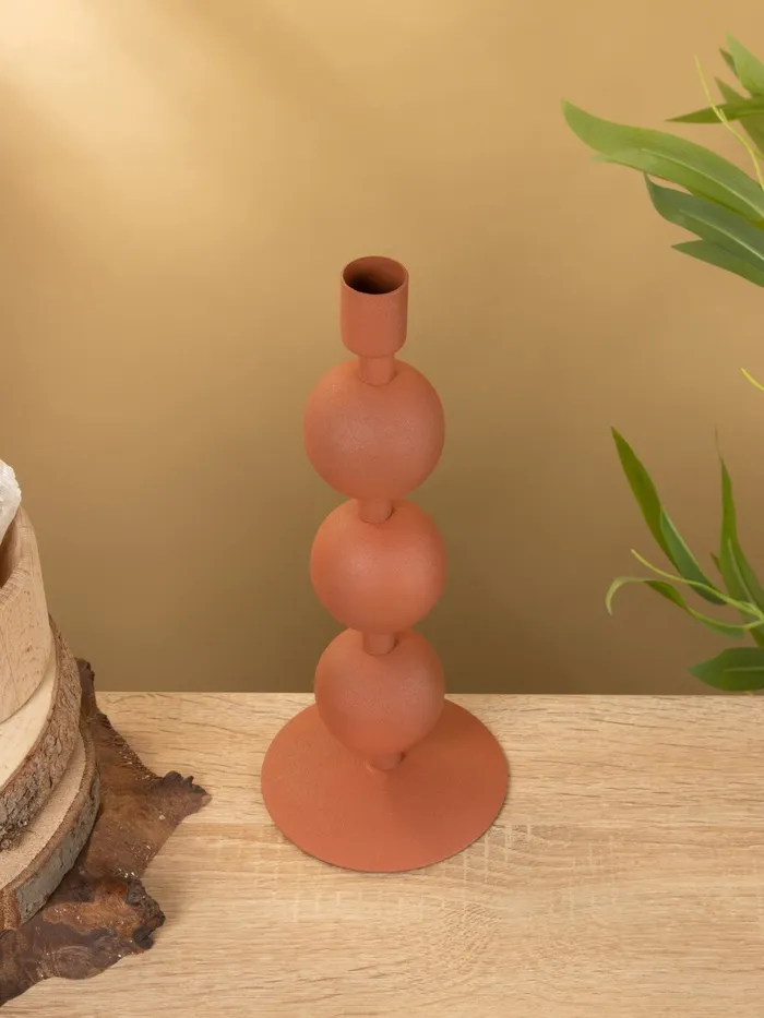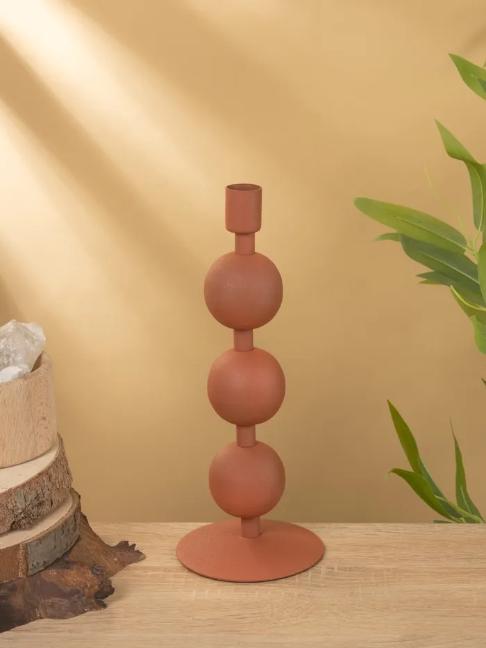 Подсвечник на 1 свечу текстурный «Терракотовый», с 3 сферами, 10×10×25 см