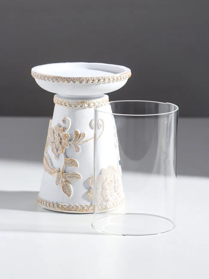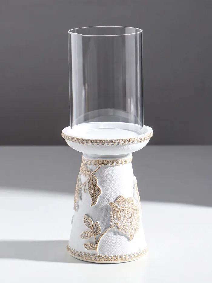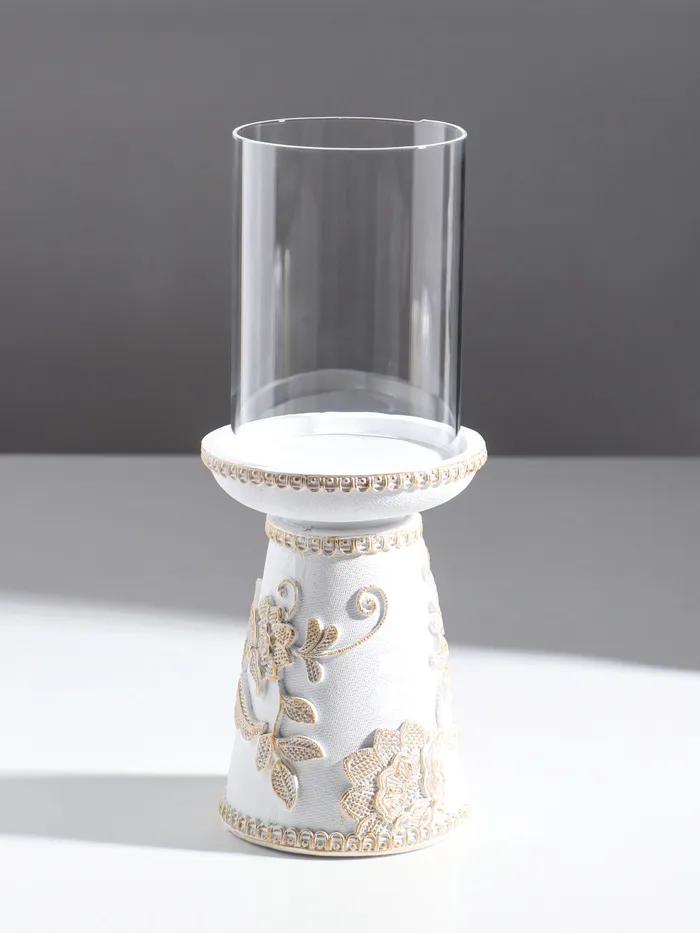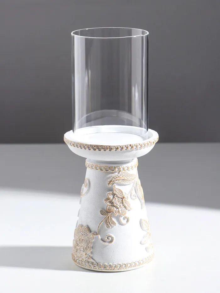 Подсвечник на 1 свечу «Цветение. Кружево», полистоун, белая с золотой патиной, 9.5×9.5×24.2 см — Характеристики