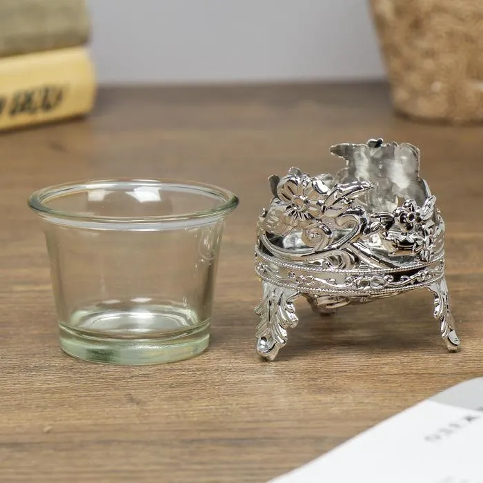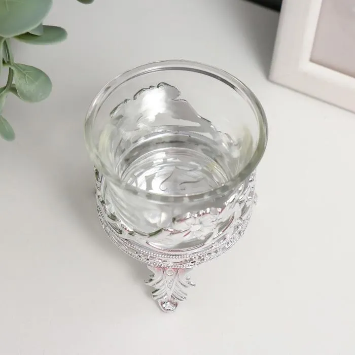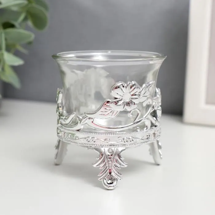 Подсвечник на 1 свечу «Цветочек», пластик, стекло, серебро, 6.5×6×6 см — Характеристики