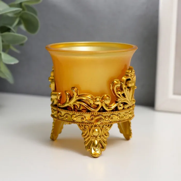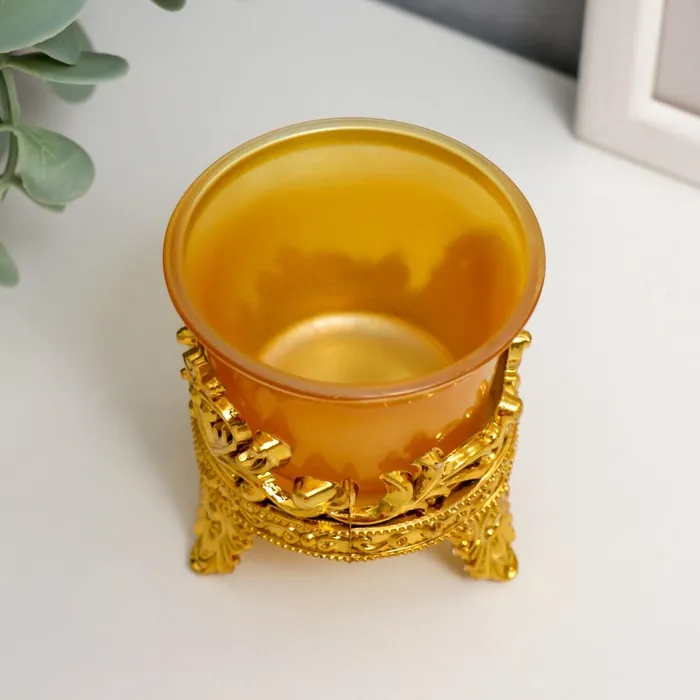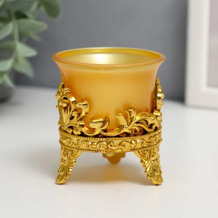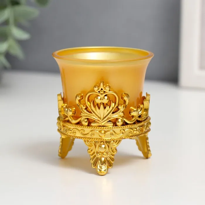 Подсвечник на 1 свечу «Цветок лотоса», пластик, стекло, золото, 6.5×6×6 см — Характеристики