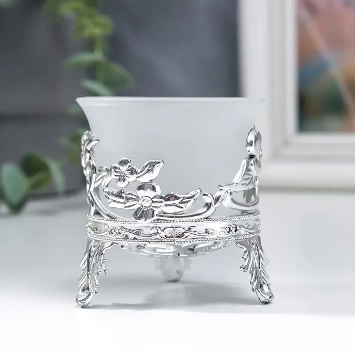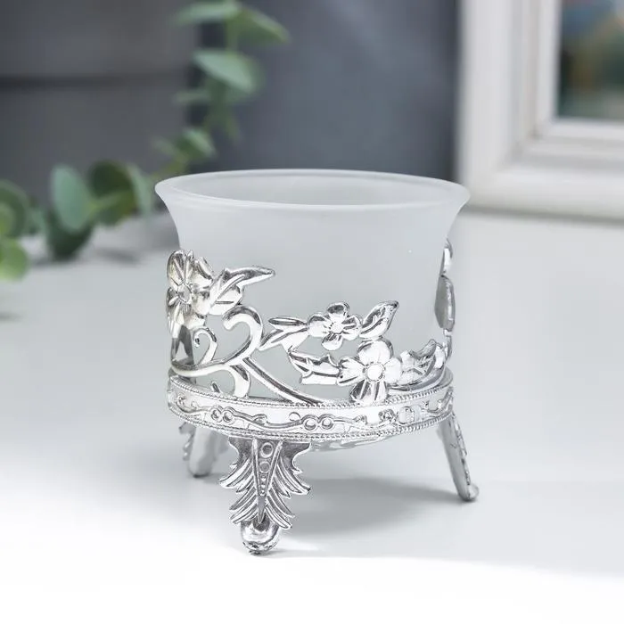 Подсвечник на 1 свечу «Цветы», пластик, стекло, серебро, 6.5×6×6 см — Характеристики