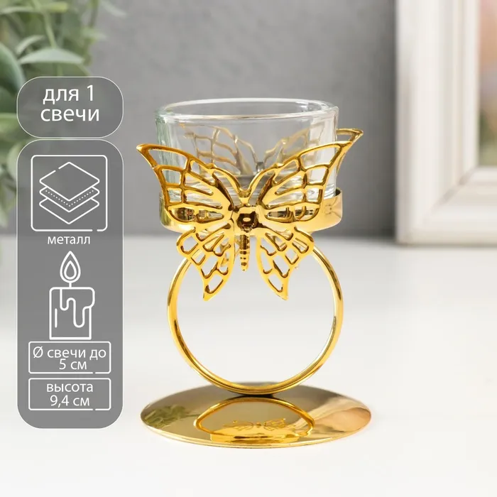 Подсвечник на 1 свечу в форме сердца Love is, 12.5×12.5×3 см, золотой — Характеристики