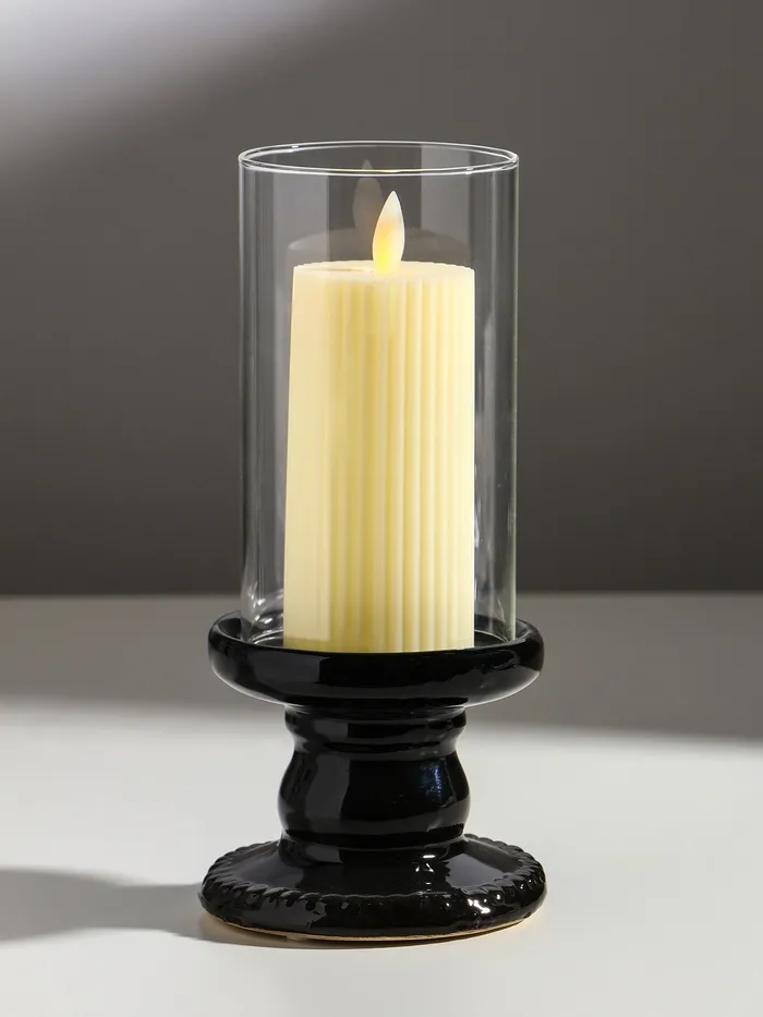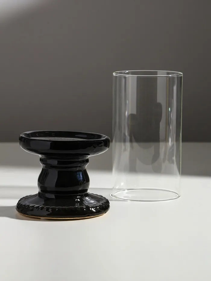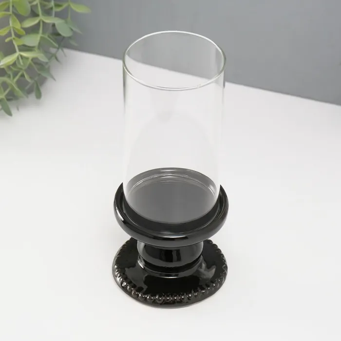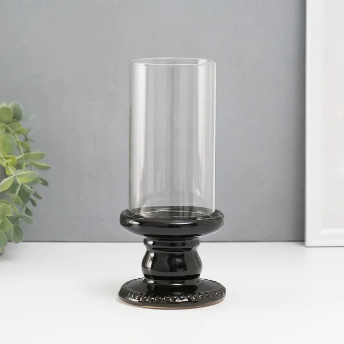 Подсвечник на 1 свечу «Веллис», керамика, стекло, d=8 см, чёрный, 10×10×21.5 см — Характеристики
