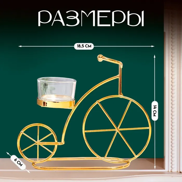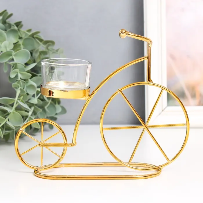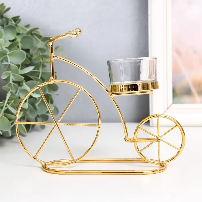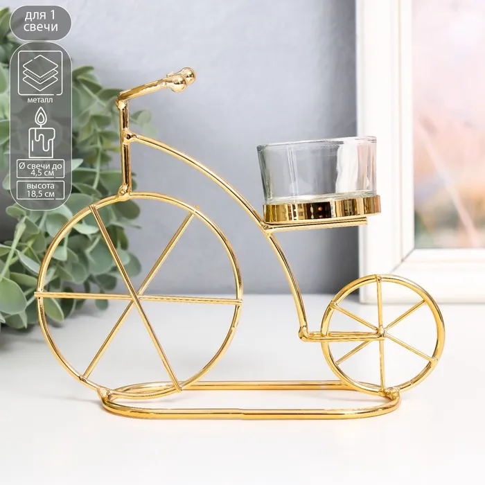 Подсвечник на 1 свечу «Велосипед», металл, стекло, d-4.5 см, золото, 18.5×6×14 см — Характеристики