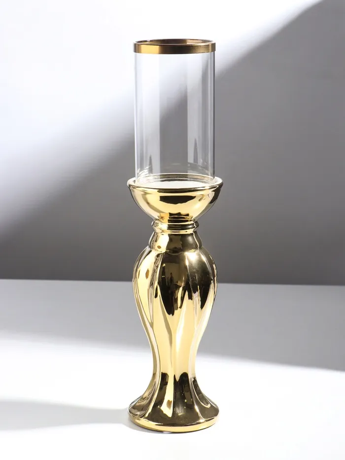 Подсвечник на 1 свечу «Версаль», керамика, стекло, d=7.5 см, золото, 9.5×9.5×38.5 см — Характеристики