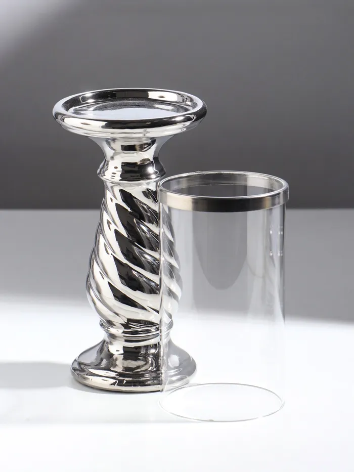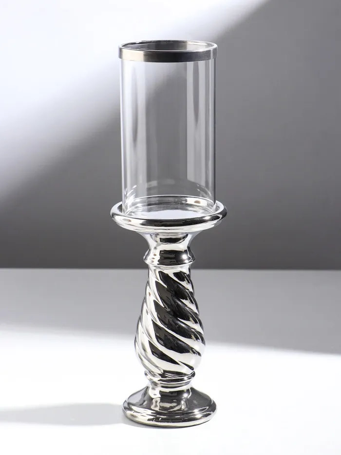 Подсвечник на 1 свечу «Виток», керамика, стекло, d=7.5 см, серебро, 9.5×9.5×32 см — Характеристики
