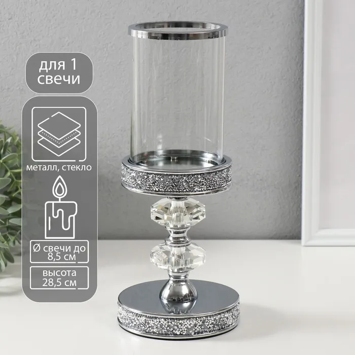 Подсвечник на 1 свечу «Вива кристалл» на магните, под серебро, 11.8×11.8×28.5 см — Характеристики