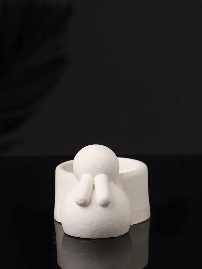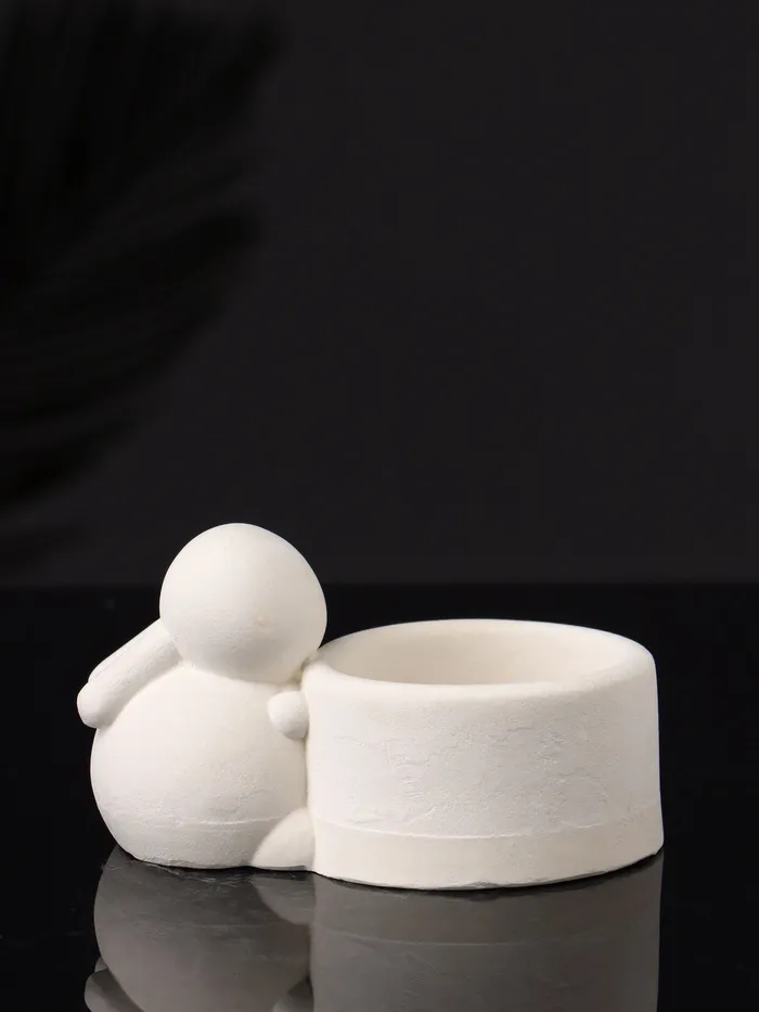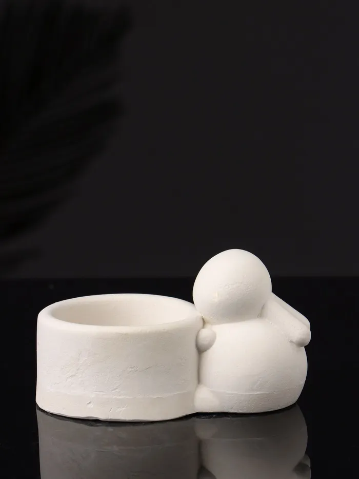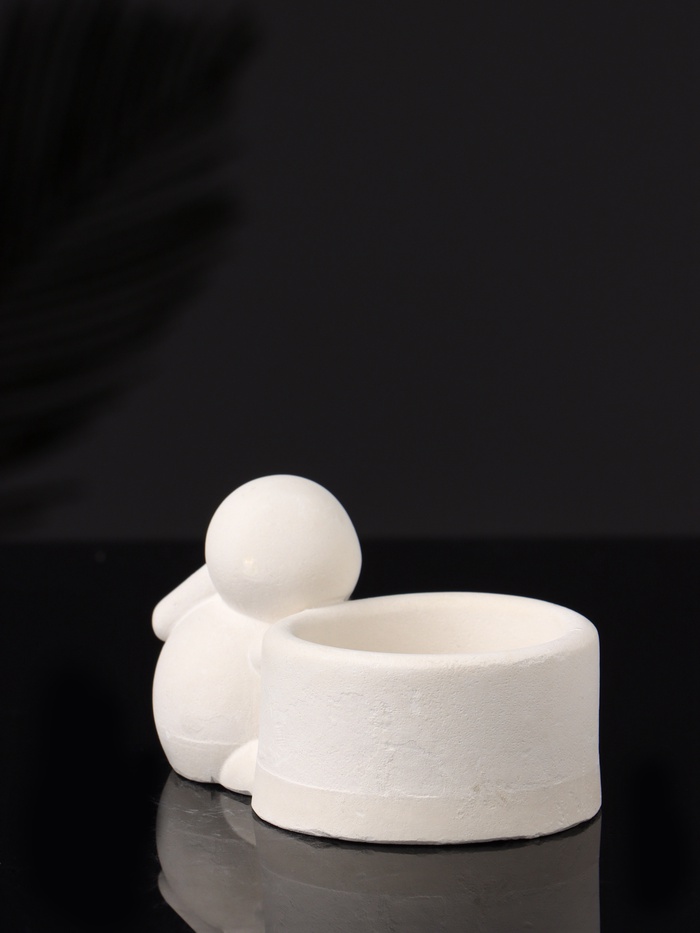 Подсвечник на 1 свечу «Заяц с чашей», 8×6×4 см, натуральный, гипс