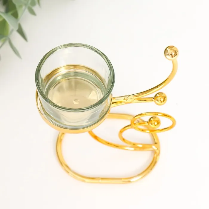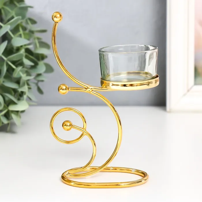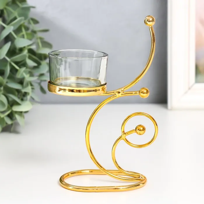 Подсвечник на 1 свечу «Завитки. Шарики», металл, стекло, d=4.5 см, золото, 10×5×15 см — Характеристики