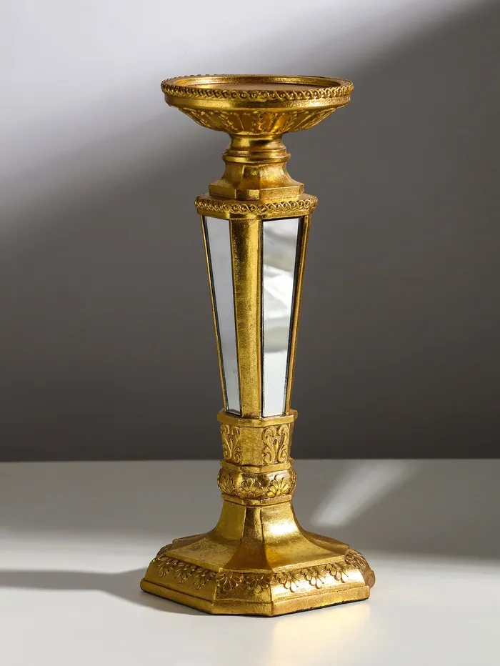 Подсвечник на 1 свечу «Зазеркалье», полистоун, золото, 10.7×10.7×26.4 см — Характеристики