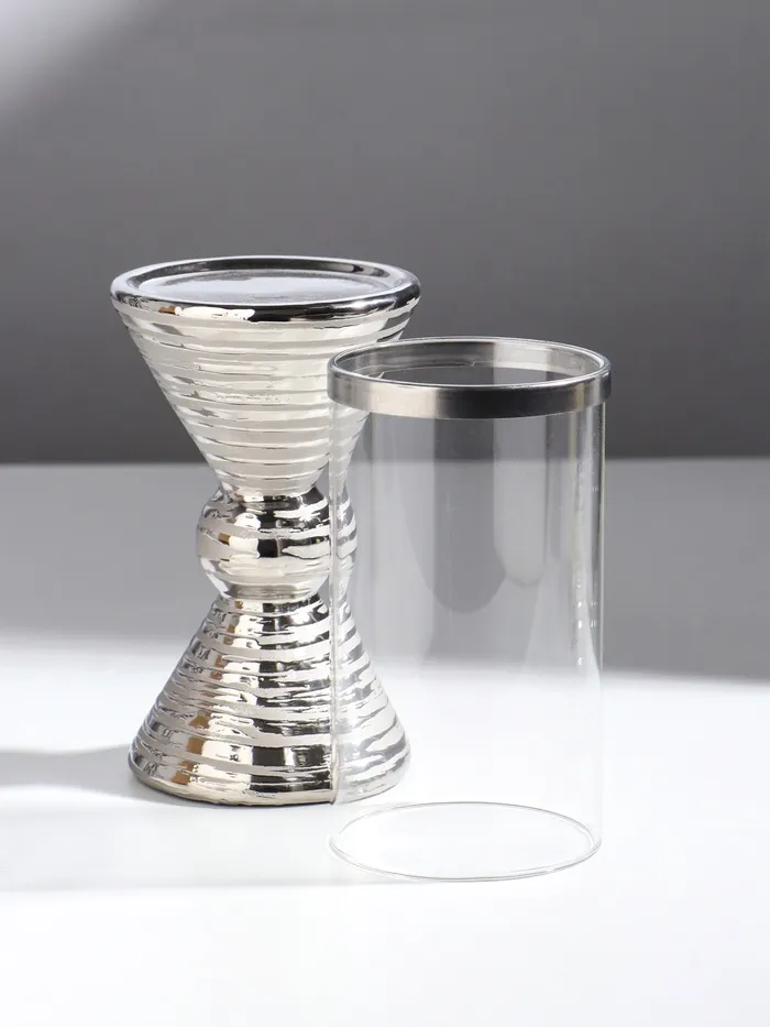 Подсвечник на 1 свечу «Зазеркалье. Зебра», керамика, стекло, d=7.5 см, серебро, 9.5×9.5×29 см — Характеристики