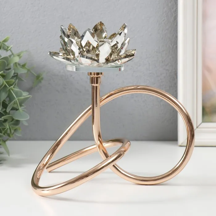 Подсвечник на 1 свечу «Золотой лотос. Завиток», металл, акрил, d=4 см, золото, 19×19 см
