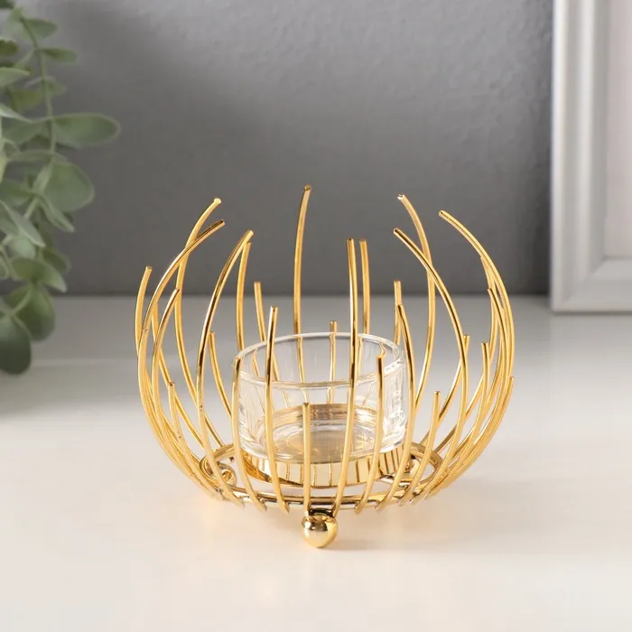 Подсвечник на 1 свечу «Золотой цветок из прутьев», металл, стекло, d=4.5 см, 12×12×9 см