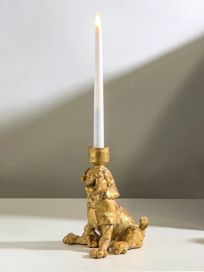Подсвечник на 1 свечу «Шарж. Зевающий щенок», полистоун, золото, 15.8×15.3×20 см